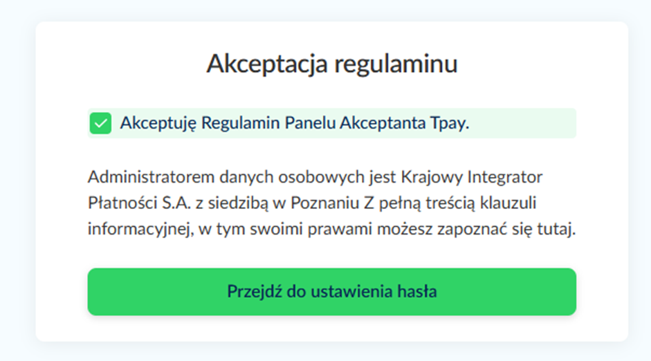 Gdy klikniesz w ten link, po akceptacji plików cookies, w pierwszym kroku zostaniesz poproszony o akceptację regulaminu Tpay.. Zapoznaj się z regulaminem i go zaakceptuj, bez tego nie przejdziesz dalej.