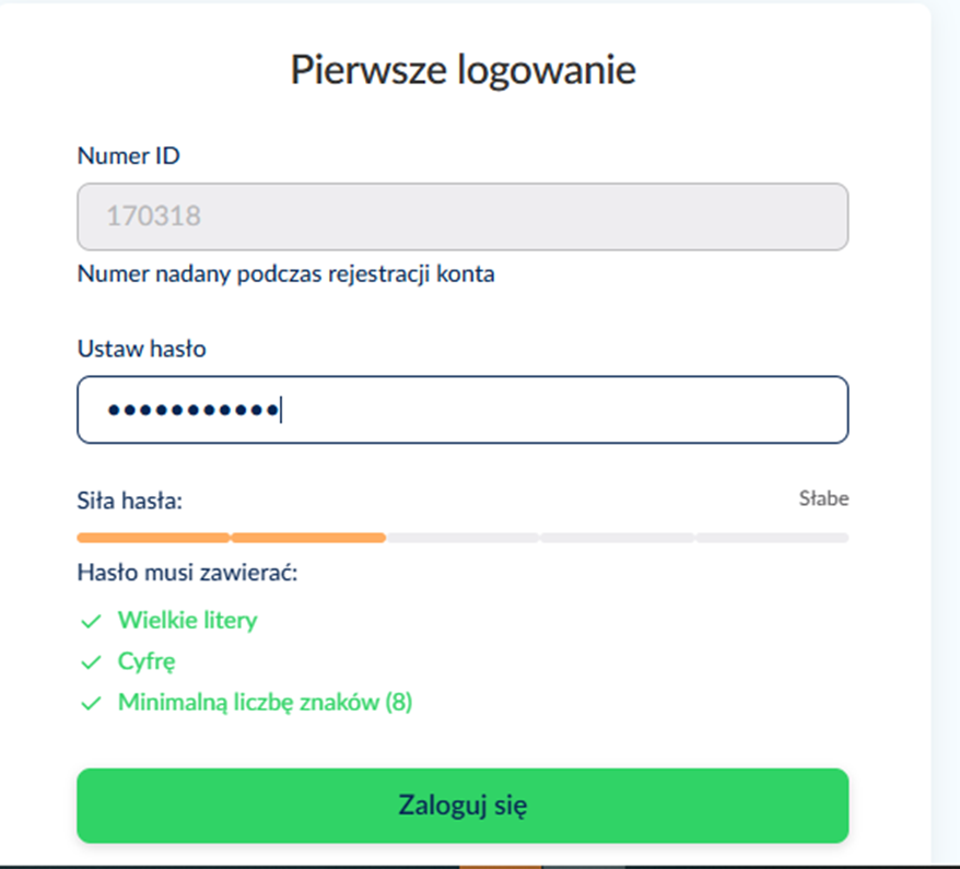 Gdy to zrobisz, przyjdź do ustawienia hasła. Jak widzisz, twój numer ID, nadany przez Tpay jest już wpisany.