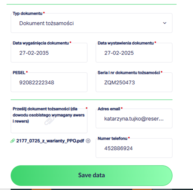 i potwierdź, że dane które wprowadziłeś są gotowe do weryfikacji.